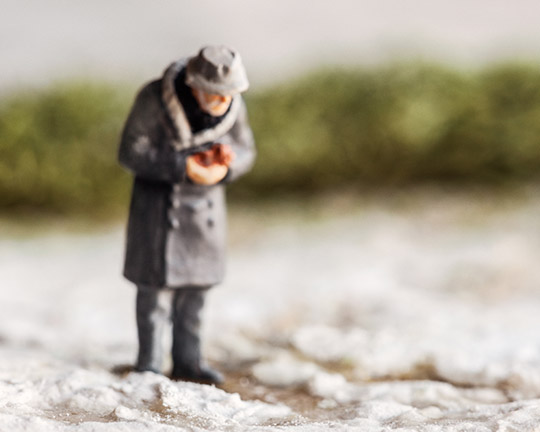 Creating and photographing miniature scenes has become a type of visual journal for me to explore personal subjects and reflect on experiences. The images in If and When are inspired by a mix of memories and idealized paths. I selectively focus on a portion of the foreground, using shallow depth of field to blur the figure and impart a painted aesthetic. The soft focus also downplays the scale of the model, leaving room to reflect on the longed for and the unknown.